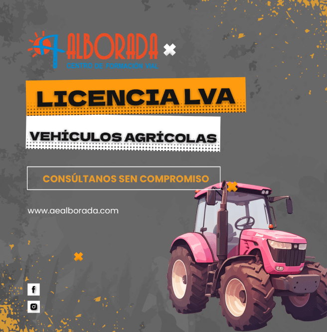 Licencia LVA: Vehículos Agrícolas En Autoescuela Alborada haremos que consigas tu licencia para conducir vehículos especiales agrícolas.