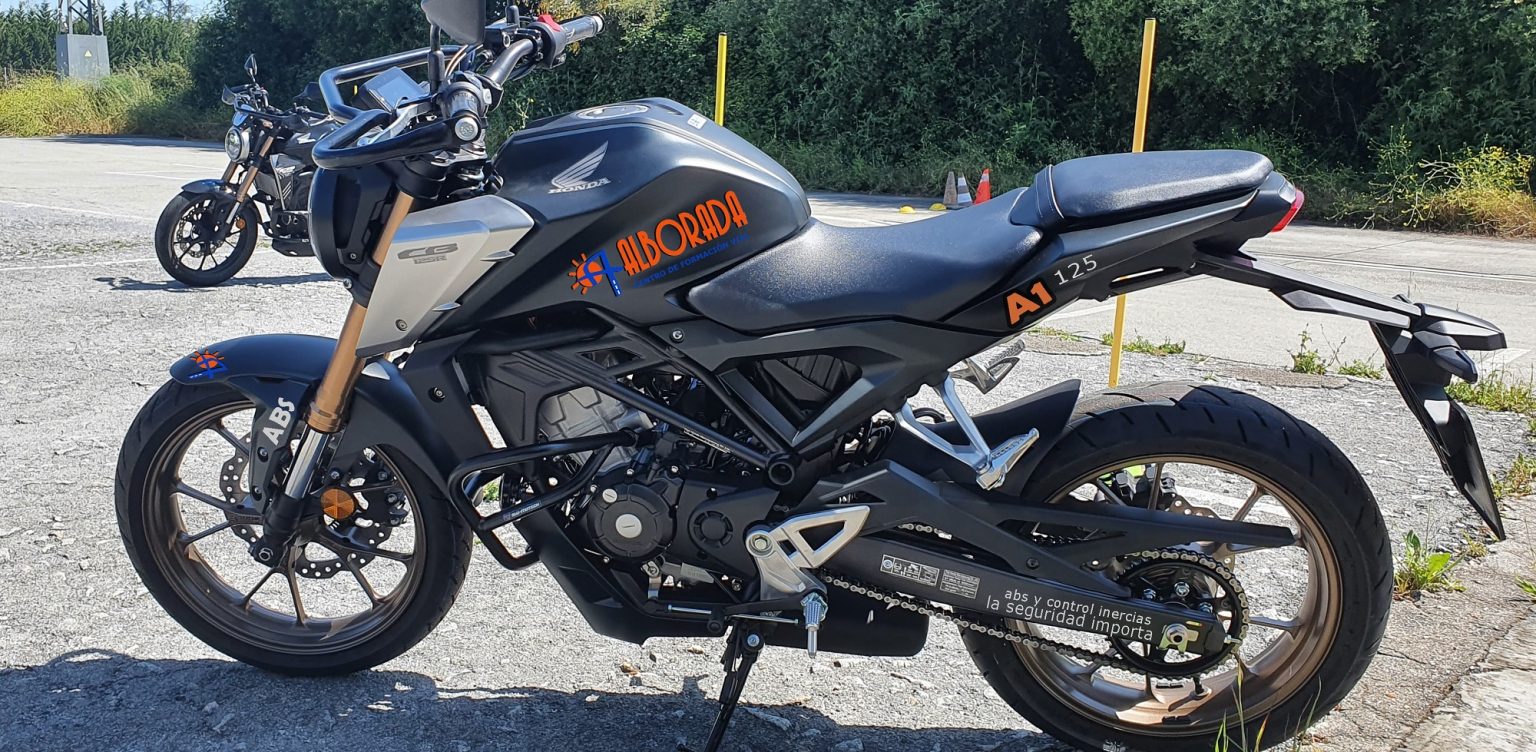 - Disponemos de una moto actual con sistemas de seguridad activa como frenada ABS y control de incercias. La nueva Honda cb125r es una moto ideal para el aprendizaje, manejable, altura baja y ligera.